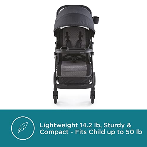 Contours Quick Elite Lightweight Compact Fold Travel Baby Stroller & Toddler Stroller, Infant Car Seat Compatibility, Multi-Position Seat Recline, Sun Canopy, 5-Point Safety Harness – Eclipse Black