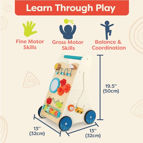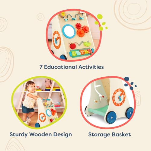 B. toys – Wooden Activity Walker – 7 Educational Activities – Learning & Walking Toy for Toddlers – Stand, Push, Walk – 1 Year + – Little Learning Steps