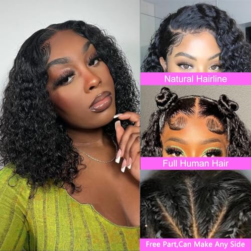 Deep Wave 13×4 HD Lace Front Wigs Human Hair Pre Plucked 12 Inch Short Bob Human Hair Wigs for Black Women Glueless Lace Frontal Closure Curly Wig Perruque Femme Humain Naturel