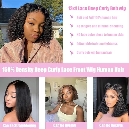 2.Short Curly Bob Wigs For Black Women Human Hair Hd Lace: 13×4 Hd Transparent Lace Frontal Bob Wig Human Hair Deep Wave.Invisible, Soft, Breathable And Comfortable. Pre-Plucked Natural Hairline.