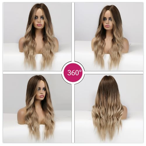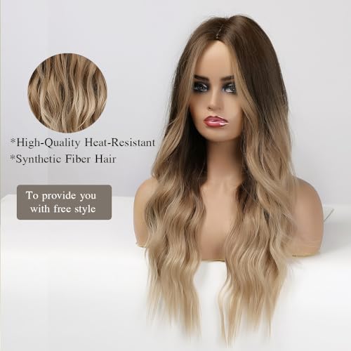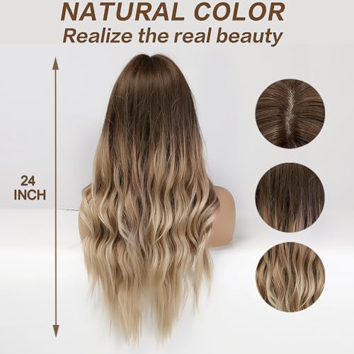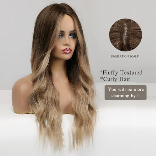 Esmee 24 Inches Long Curly Synthetic Hair Wigs for Women Middle Parting Dark Brown to Light Brown Wigs for Daily Party Cosplay Use