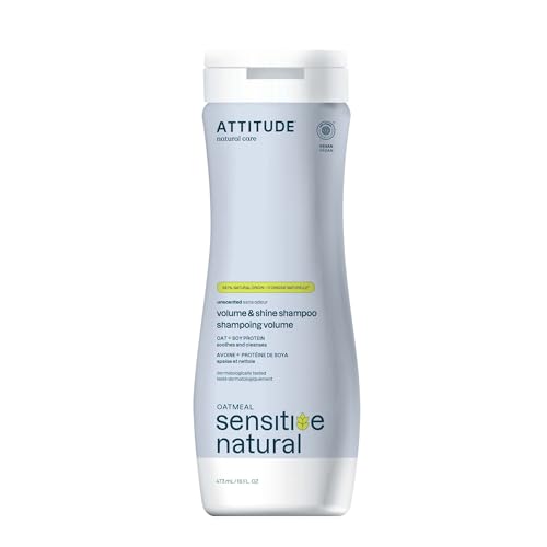ATTITUDE Volume and Shine Hair Shampoo for Sensitive Dry Scalp, Made in Canada, EWG Verified, Soothing Oat, For Thin Hair, Naturally Derived Ingredients, Vegan and Plant-Based, Unscented, 473 mL