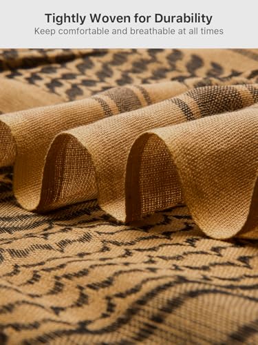 SUPERIOR DESIGN: The fabrics with Jacquard Weave and Decorative Tassel, enhance the overall fashion sense of the Desert Scarf. 6 different classical colors available. Perfect for daily life, you can dress them up or wear them with casual outfits. Net weight: 190g (6.7oz). Ultra-light and breathable design, makes the shemagh scarf extremely comfortable for you to wear.
