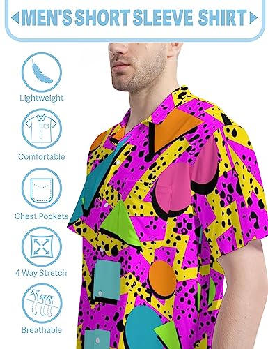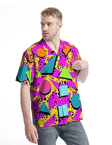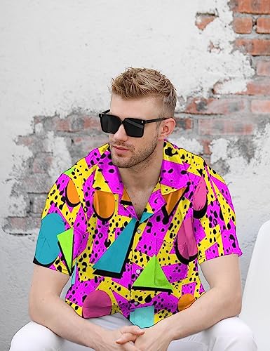 80s 90s Hawaiian Shirts for Men Funky Retro Short Sleeve Button Down Shirts Casual Summer Beach Shirts Party Shirt