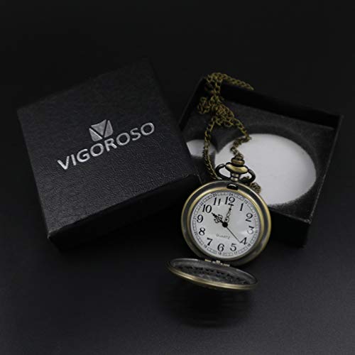 VIGOROSO Mens Pocket Watch Black Butler Antique Hollow Quartz Bronze Steampunk in Box, Bronze, Large, Steampunk
