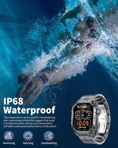 【IP68 Waterproof & Military-Grade Standard】PODOEIL rugged smartwatch features an IP68 waterproof rating. It effortlessly handles daily scenarios like rain or hand-washing, as well as allows you to enjoy water activities such as swimming and boating. Additionally, our Outdoor Adventure Smartwatch has successfully passed 15 rigorous durability tests, simulating challenging conditions like deserts, rainforests, and arctic climates. This makes it highly resilient to the effects of any environment. (Note: It is recommended to avoid prolonged immersion in water to maintain the smartwatch’s longevity.)