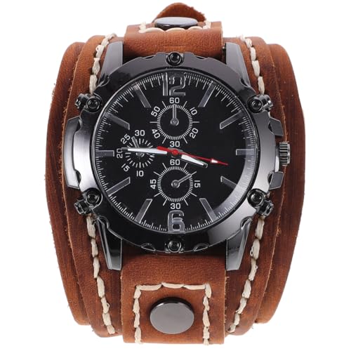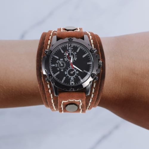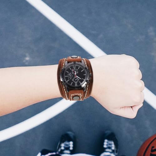 ULTECHNOVO Men Retro Bracelet Watch, Casual Wristwatch Cowhide Strap Watch Men Big Dial Watch Wide Leather Bracelet Watch Quartz Sport Watch Ideal Gift for Men Boys