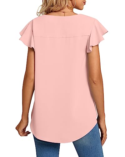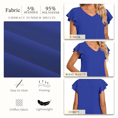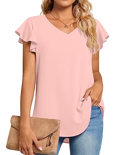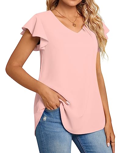 TAOHUADAO Women Summer Tops V Neck Ruffle Short Sleeve T-Shirts Chiffon Blouses