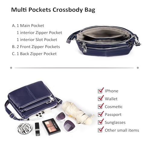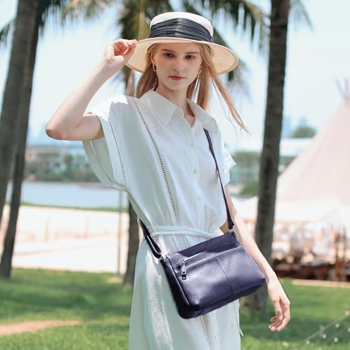 befen Genuine Leather Crossbody Purses Bags for Women, Medium Pocketbooks Shoulder Bag Satchel Purse with Multi Pockets