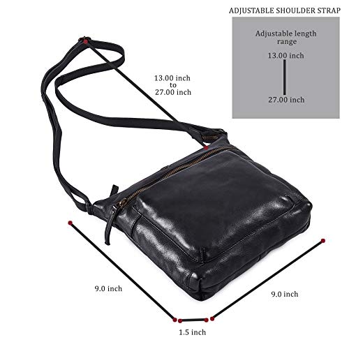 This handmade crossbody bag for women is crafted with genuine top grain leather by skilled artisans in India, giving it a unique and high-quality finish. The bag has a small vintage look, with a washed vintage treatment that enhances its character and makes it softer with every use. The dimensions of the bag are 9x9x1.5 inches, making it perfect for daily commute, travel, or a night out. It features multiple zipper pockets, including a main zipper, front zipped drop pocket, front gusset zip pocket, inside hidden zip pocket, and back zip pocket, providing ample storage space for a mini iPad, lipsticks, cellphone, car keys, and small makeup items. The strong shoulder strap is adjustable, with a length of 51 inches, making it comfortable to carry. This bag is an ideal gift option for any occasion, and it comes with a no-hassle money-back guarantee, ensuring customer satisfaction.