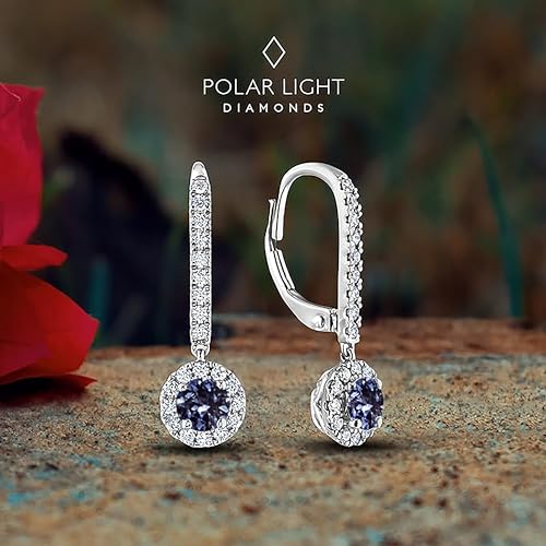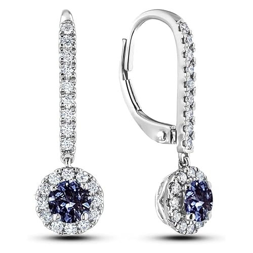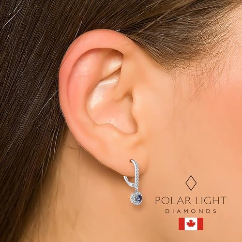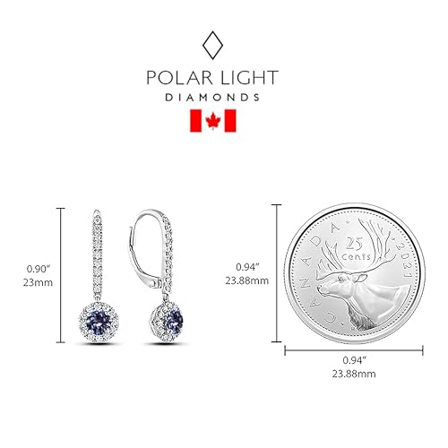 10K White Gold 1/2 Cttw Blue Sapphire & 1/3 Cttw Diamond Halo Dangle Style Leverback Earrings (H-I Color, SI2-I1 Clarity) – Made in Canada