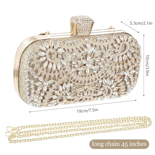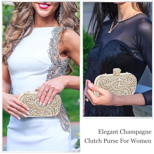 — This gold evening bag has a suitable capacity to hold mobile phones, lipsticks, powder, eye shadows, keys, tissues, etc. And it also has two ways to carry: hand or shoulder.