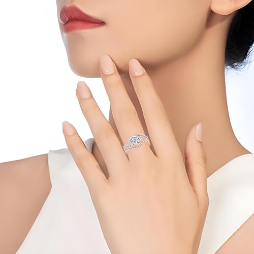 EUSJ 1.0-3.0 Carat Round-Cut Lab-Grown Diamond Engagement Ring for Women IGI Certified 10k/14k/18k Gold Three Row Engagement Wedding Ring for Womrn(D,VVS1,1.0ct Center), Metal, Created Diamond