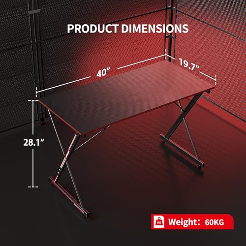 DESINO Gaming Desk 40 Inch PC Computer Desk, Home Office Desk Table Gamer Workstation, Simple Game Table, Carbon Fiber Surface Gaming Desk, Black