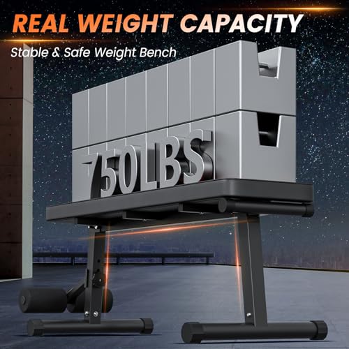 2 In 1 Adjustable Flat Weight Bench – Bonvork 45.3” Extended Foldable Flat Bench for Home Gym,750LBS Sit Up Bench with 18” Widened Base,Strength Training Workout Bench Press for Full Body Exercise