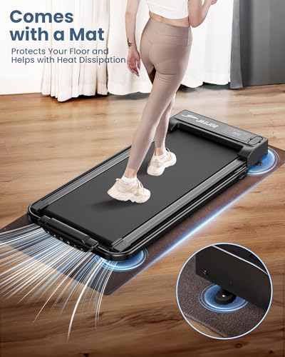 【Compact and Easy-to-Store Foldable Treadmill】This walking pad is designed with a quick-fold mechanism, allowing you to fold the treadmill in just two steps. With built-in transport wheels, you can easily move and store the treadmill under a bed, sofa, or coffee table. Perfect for apartments or small spaces, this walking treadmill under desk with handle ensures you don’t sacrifice space for fitness