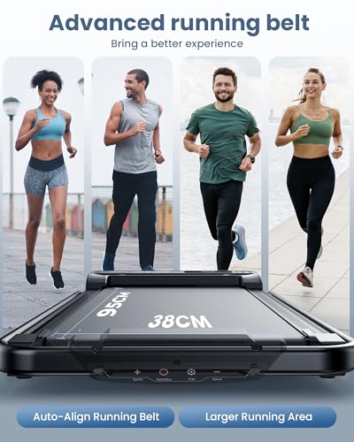 【2 in 1 Under Desk Treadmill with Non-Slip Running Belt】This treadmill with the foldable handle allows it to function as a walking pad with speeds ranging from 0.6 to 3.8 mph, helping you experience the efficiency of walking while you work. When the handle is raised, it transforms into a treadmill with speeds from 3.8 to 6.2 mph. This at home treadmill also features a 5-layer, non-slip running belt (37.4 x 15 inches), offering ample space for comfortable walking or jogging
