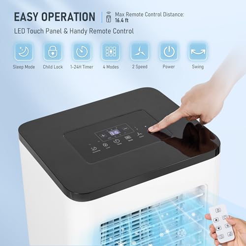 Portable Air Conditioner, 10000 BTU 3-in-1 Cooling, Dehumidifier, Fan with Remote Control, 24H Timer, LED Display, Sleep Function, Child Lock for Home, Office, Bedroom (Window Kit Included)