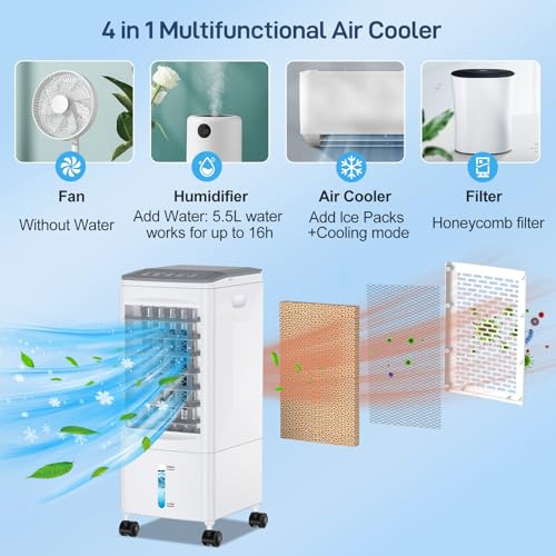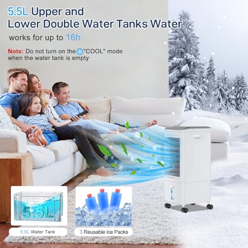 Portable Air Conditioner, 3-IN-1 Portable AC w/Remote, 3 Speeds Evaporative Air Cooler, 1.58 Gal Tank, Swing, 7H Timer, Air Conditioner Portable for Bedroom Office