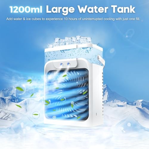 Portable Air Conditioner, Air Conditioner Portable with 3 Speeds, 3 Mist Settings, 1200ml XL Water Tank, 2~8h Timer, Portable Ac Unit, Small Mini Air Conditioner, Personal Air Cooler Fan for Bedroom
