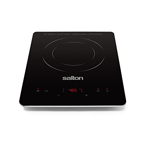 Salton Slim Induction Cooktop with Temperature Probe | 300-1500W | 10 Cooking Levels 60°C to 240°C (140°F to 465°F) | Energy Efficient | Easy-To-Clean | Timer with Auto Shut-Off | ID2066