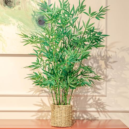 Luxurious Handmade Seagrass Pot: Our fake bamboo tree comes in a luxury handmade seagrass pot, adding elegance to any room decor. Perfect for living room decor, this plant stand indoor arrangement enhances your home decor living room with a touch of nature.
