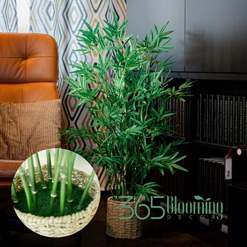 365 Blooming Decor 3.2 ft Artificial Bamboo Silk Tree in Handmade Seagrass Pot – Luxury Potted Faux Bamboo Plant with 13 Trunks for Room, Home, Office and Kitchen Decor – Elegant Money Tree