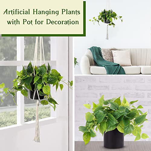 Artificial Plants for Decor, Artificial Plant with Pot, Artificial Potted Plants, Fake Plants Indoor Pothos Boho Greenery, Faux Ivy Vine Plant for Bedroom, Living Room, Office, Boho Decor – Black Pot