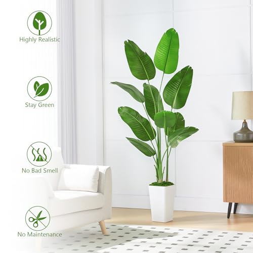 FSOHOI Birds of Paradise Plant Artificial 6.6 FT Lifelike Silk Artificial Plants Indoor Fake Banana Leaf Tree in Pot Faux Tree Floor Plant for Home Office Entryway Farmhouse Outdoor Decor