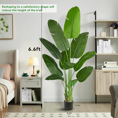 Brighten Up Your Decor: 6.6ft tall bird of paradise plant artificial included a black planter(5″H x 6″W). Compared to real plants that easily shed leaves and wither, fake plants do not shed leaves or wither, and our artificial banana tree, inspired by the beauty of paradise bird plants, brings a touch of exotic elegance to any space with its lifelike appearance