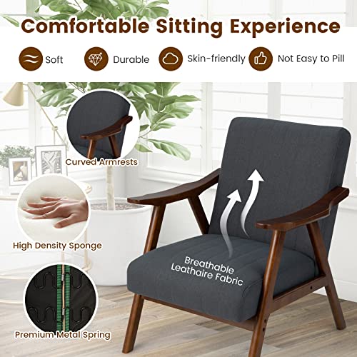 Giantex Mid-Century Modern Accent Chair – Comfy Upholstered Lounge Chair with Arms, Anti-Slip Felt Pads, Wooden Frame Soft Padded Arm Chairs for Living Room, Bedroom, Office, Study, Gray