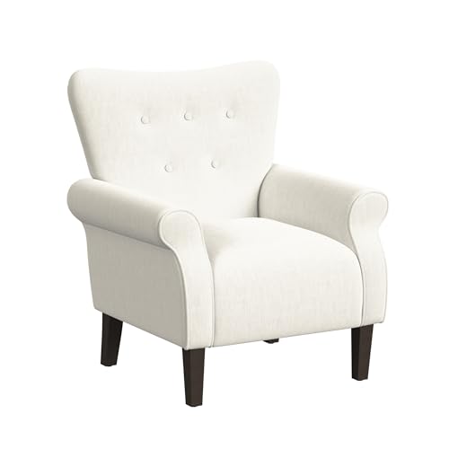 HomePop classic rolled arm chair offers comfort and style with a button tufted seat back. This textured solid fabric creates a textured feel and a complex appearance, enhanced by espresso wood finished legs. This Rolled Arm Accent Chair has a timeless appeal that complements a broad range of home décor. Use one accent chair in your living room or bedroom or pair two together for a fashionable seating solution. Easy to assemble and maintain.