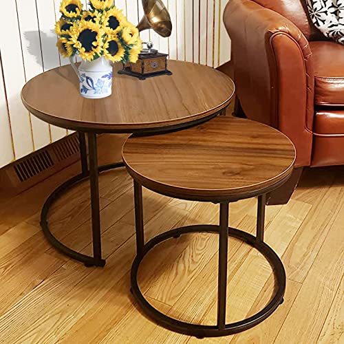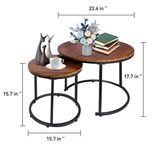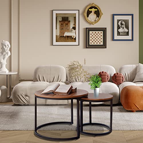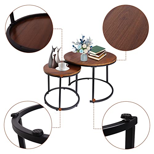 VILAWLENCE Coffee Table Nesting Set of 2 Round End Table Accent Side Stacking Tables with Sturdy Metal Frame, Modern Living Room Table Sets Industrial Nightstand