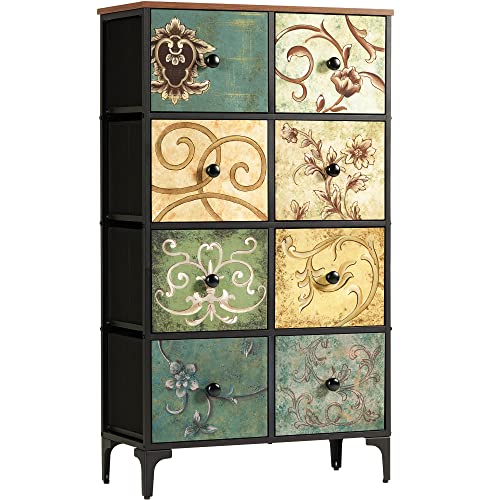 AOPSEN Tall Dressers for Bedroom with 8 Drawers, Storage Drawer Unit for Closet, Fabric Organizer Chest of Drawers for Kids, Living Room, Nursery, Steel Frame, Wood Top