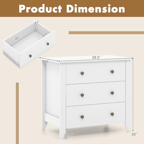 DORTALA Dresser for Bedroom with 3 Drawers, Chest of Drawers with Metal Knobs, Bedside Table Storage Tower Organizer for Bedroom, Entryway, Nursery, 72 x 45 x66 CM (White)