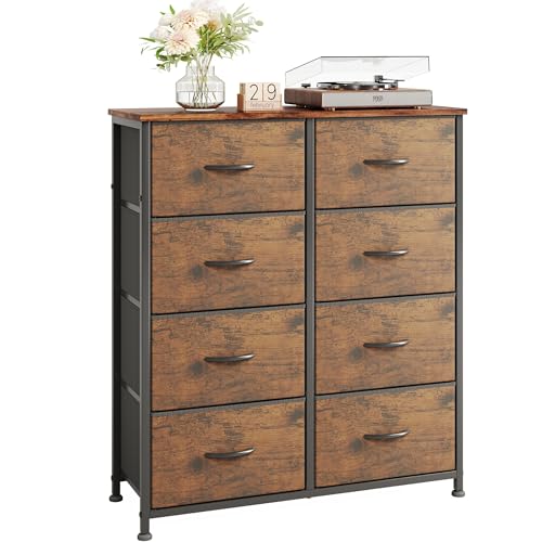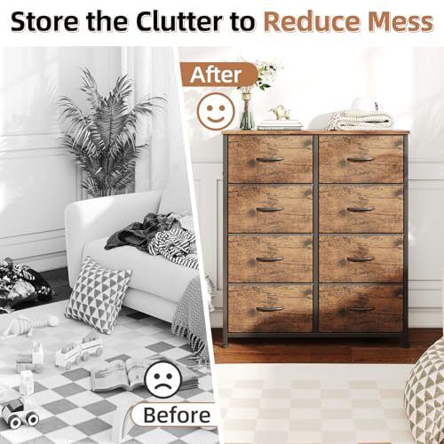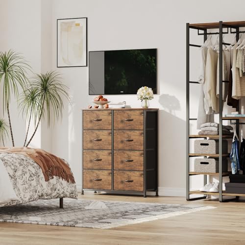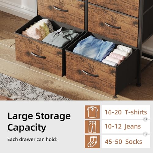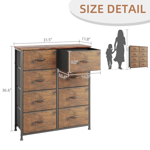 MUTUN Dresser for Bedroom with 8 Drawers, Wide Storage Chest of Drawer, Wooden Top with Fabric Bins TV Stand Organizer Tower for Closet Nursery Bedside Living Room Entryway Hallway Office Rustic Brown