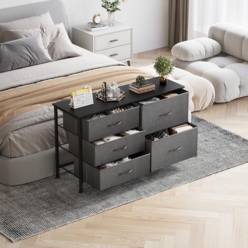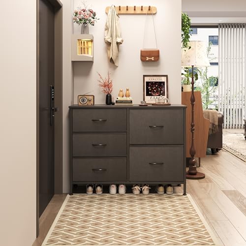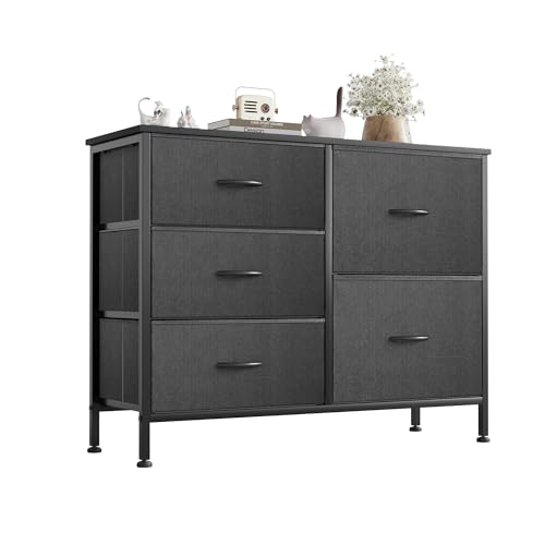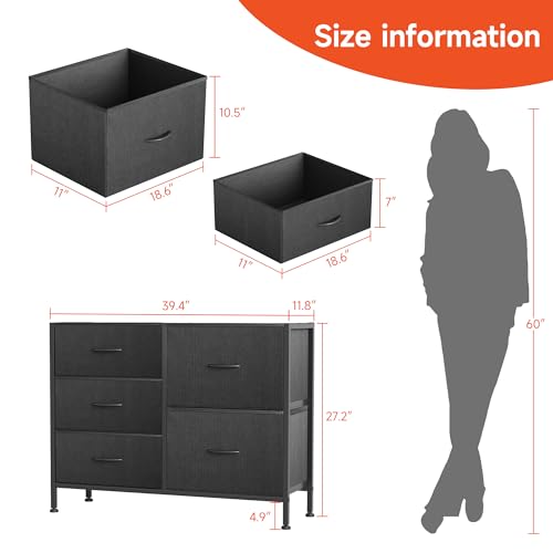 Vermess 5 Drawers Dresser Storage, Double Dresser, TV Stand,Chest of Drawers for Closet for Living Room, Bedroom, Closet, Hallway,Black