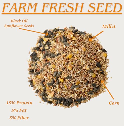 Superior Quality & Nutrition: Compared to the other guys, our “basic” mix is their “premium.” This high energy bird seed offers 15% Protein, 5% Fat and 5% Fiber—versus 7% Protein, 3% Fat, and 5% Fiber.