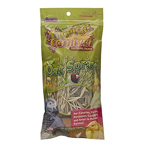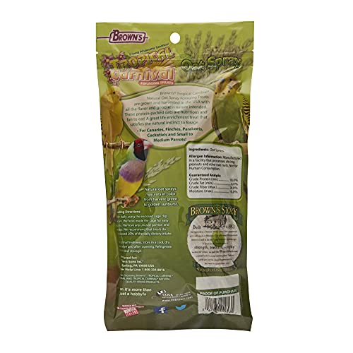 F.M. Brown’s Tropical Carnival Natural Oat Spray Foraging Treat for Canaries, Finches, Parakeets, Cockatiels, and Small to Medium Parrots, 2.5-Oz Bag – USA Grown and Harvested