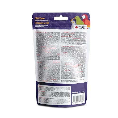 HARI Little Foragers – Chili Snaps, Oven Baked Parrot Treats are gently baked with high-quality human grade seeds, chili flakes, peanuts, and blended with Tropican for a great tasting and nutritious crunchy snack. These fun-to-eat treats are perfectly sized and are easy for parrots to hold; they are also ideal for foraging enrichment activities or training rewards. Birds love the texture and taste.
