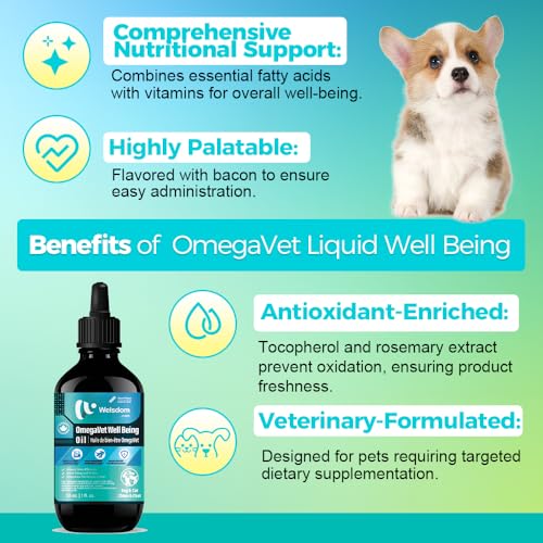 Welsdom Pets OmegaVet Liquid – 30mL | Omega-3 & Vitamin Supplement for Cats & Dogs | Supports Joint, Heart, and Overall Health | Rich in Fish Oil, Antioxidants, and Palatable Bacon Flavor