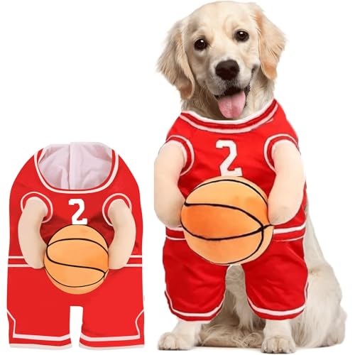 Dog Basketball Costume, Dog Basketball Costume with Ball, Funny Dogs Costume Sports Clothes for Dogs (L)