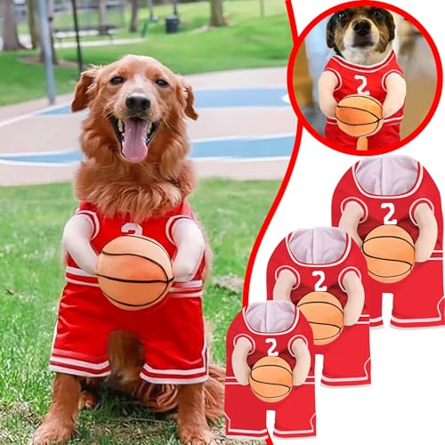 Easy To Wear Basketball Player Dog Costume: Adjustable drawstring design, easy to put on and take off. Make your pet more comfortable to wear. Funny dog costumes make your pet a furry star.