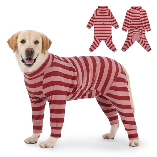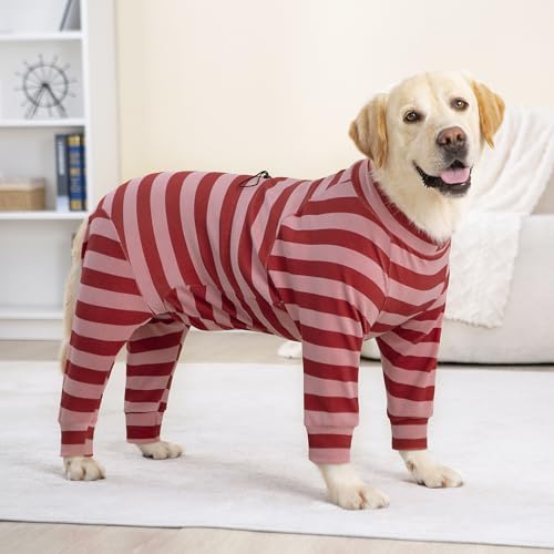 Dog Coats Autumn Winter Jumpsuit for Large Medium Dogs, Warmer Recovery Suit Polar Fleece Dog Bodysuit Lightweight Pajamas Pullover Stretchy Onesie Four-Legged Cold Weather Clothes (Xmas, X-Large)