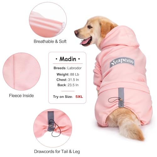 Dog Hoodies Winter Coat for Large Medium Dogs, Pullover 4 Legs Dog Warm Coat Hooded Sweatshirt, Dog Fleece Hoodie Coat for Winter Cold Weather (Pink, X-Large)