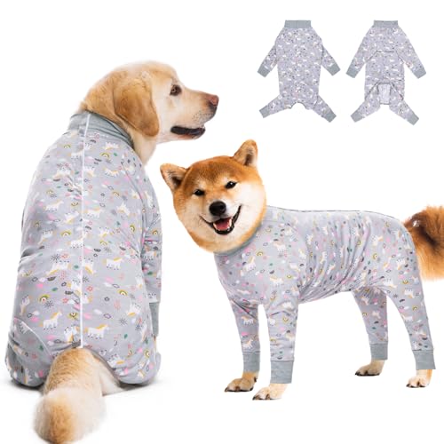 Recovery Suit for Large Medium Dogs After Surgery, Soft Breathable Anti Licking Dog Onesie E-Collar & Cone Alternative, Pet Bodysuit for Preventing Hair Loss Full Cover Wound(2XL, Grey Pony)
