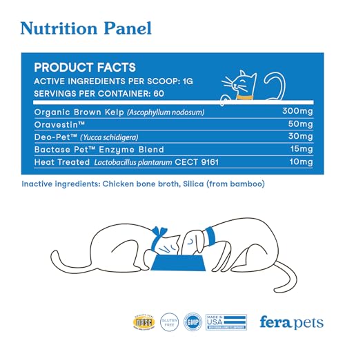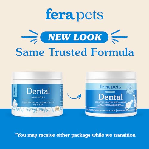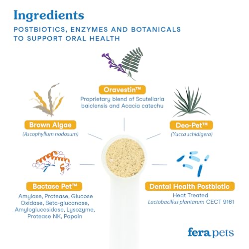 Fera Pet Organics Dental Support Powder for Dogs & Cats, Pet Breath Freshener, 60 Scoops, Vet Created, Promotes Healthy Teeth & Gums, Postbiotics & Enzymes Support Oral Health