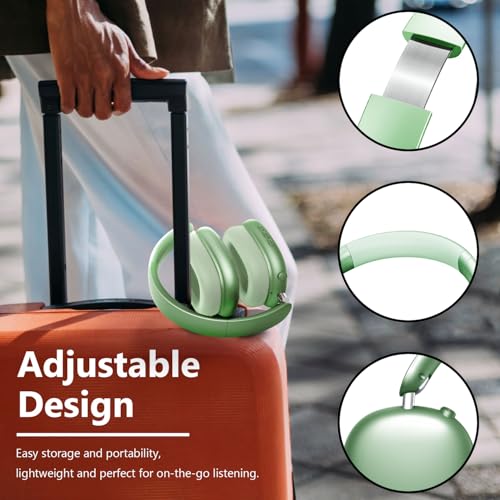 Wentronic Y01 Wireless Over Ear Headphones, Noise Canceling Bluetooth 5.3 Headphones with Microphones,Hi-Res Audio,48H Playtime,Foldable,Breathable Soft Earpads for iOS/Android/Samsung/PC-Green