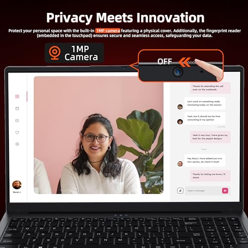 🔒 [Privacy Meets Innovation]Protect your personal space with the built-in HD camera featuring a physical cover. Additionally, the fingerprint reader (embedded in the touchpad) ensures secure and seamless access, safeguarding your data.