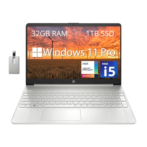 HP 15.6″ FHD Business Laptop, Intel Core i5-1135G7, 32GB DDR4 RAM, 1TB PCIe SSD, Intel Iris Xe Graphics, Numpad, Webcam, Wi-Fi 5, Bluetooth, Silver, Win 11 Pro, 32GB Hotface USB Card